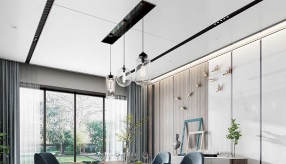 不妨從頂部空間入手,在不影響層高的前提下,以集成吊頂劃分功能空間,創(chuàng)造出視覺上的層次感,增加居室立體感。