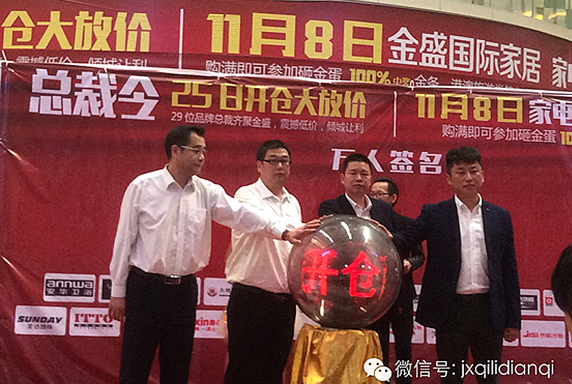 在主持人熱情洋溢的組織下,30位廠商總裁紛紛作出最大力度的“放價”承諾。奇力吊頂國內營銷總裁邱美杰先生應邀作為啟動嘉賓,啟動了象征活動開啟的啟動球。