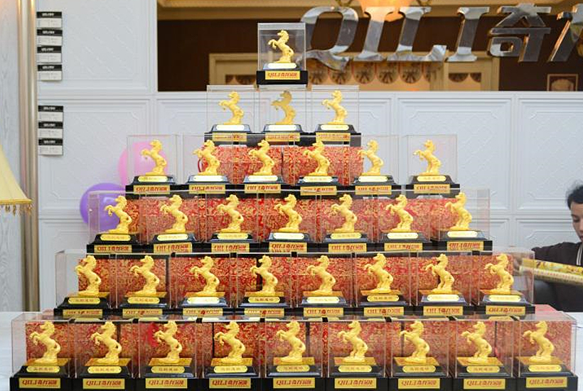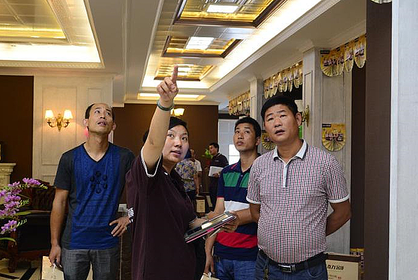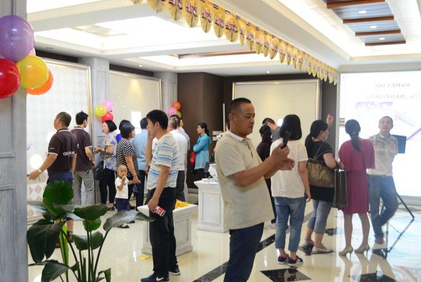 直供專車抵達奇力總部后,業主們就迫不及待得趕往公司展廳參觀。富麗堂皇的美式風尚展廳,高貴奢華、精致典雅。一進展廳,業主們的所有關注點便投射到產品上。他們紛紛掏出手機,親手記錄下奇力的精美產品與展廳。