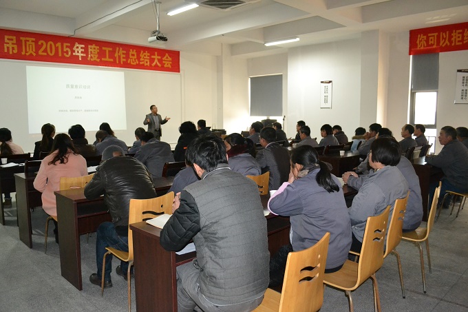 在洪總的熱情洋溢的主持下,質(zhì)量主管王工聲情并茂的給員工講述了“質(zhì)量是全員參與。”一個企業(yè)的質(zhì)量是一切東西的基礎,沒有質(zhì)量,談什么品牌、發(fā)展、競爭都是空話,尤其是對于我們吊頂行業(yè)來說,質(zhì)量更是我們賴以生存和發(fā)展的基石。