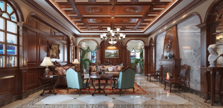 相對典雅的歐式和婉約的中式,美式風格更自由隨意。在吊頂?shù)氖褂蒙希沧非竺骺熳栽冢腿邕@款鏡面吊頂,讓空間更加敞亮舒適。
