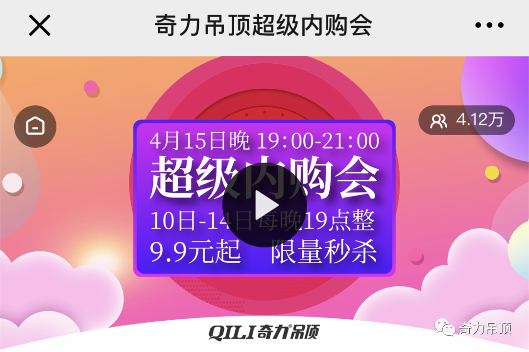 在4.15的奇力吊頂超級內購會上,我們推出了多款吊頂套餐,帶給您足不出戶的一站式購物體驗,千萬不要錯過!